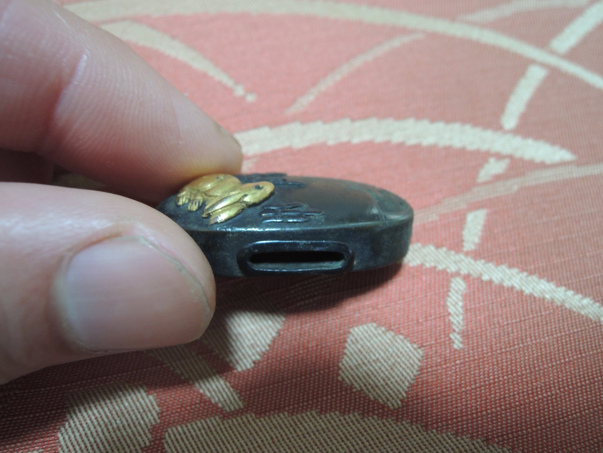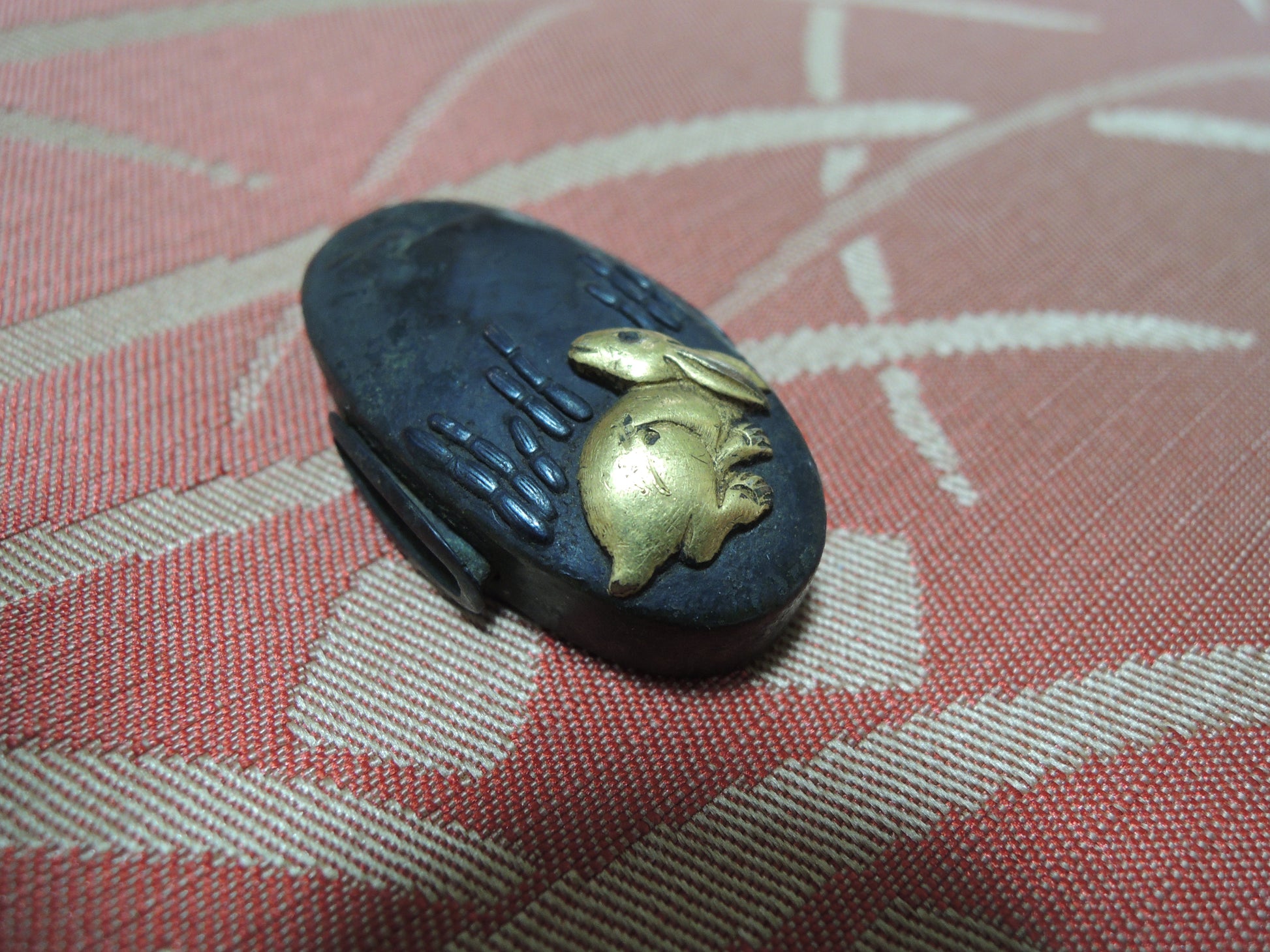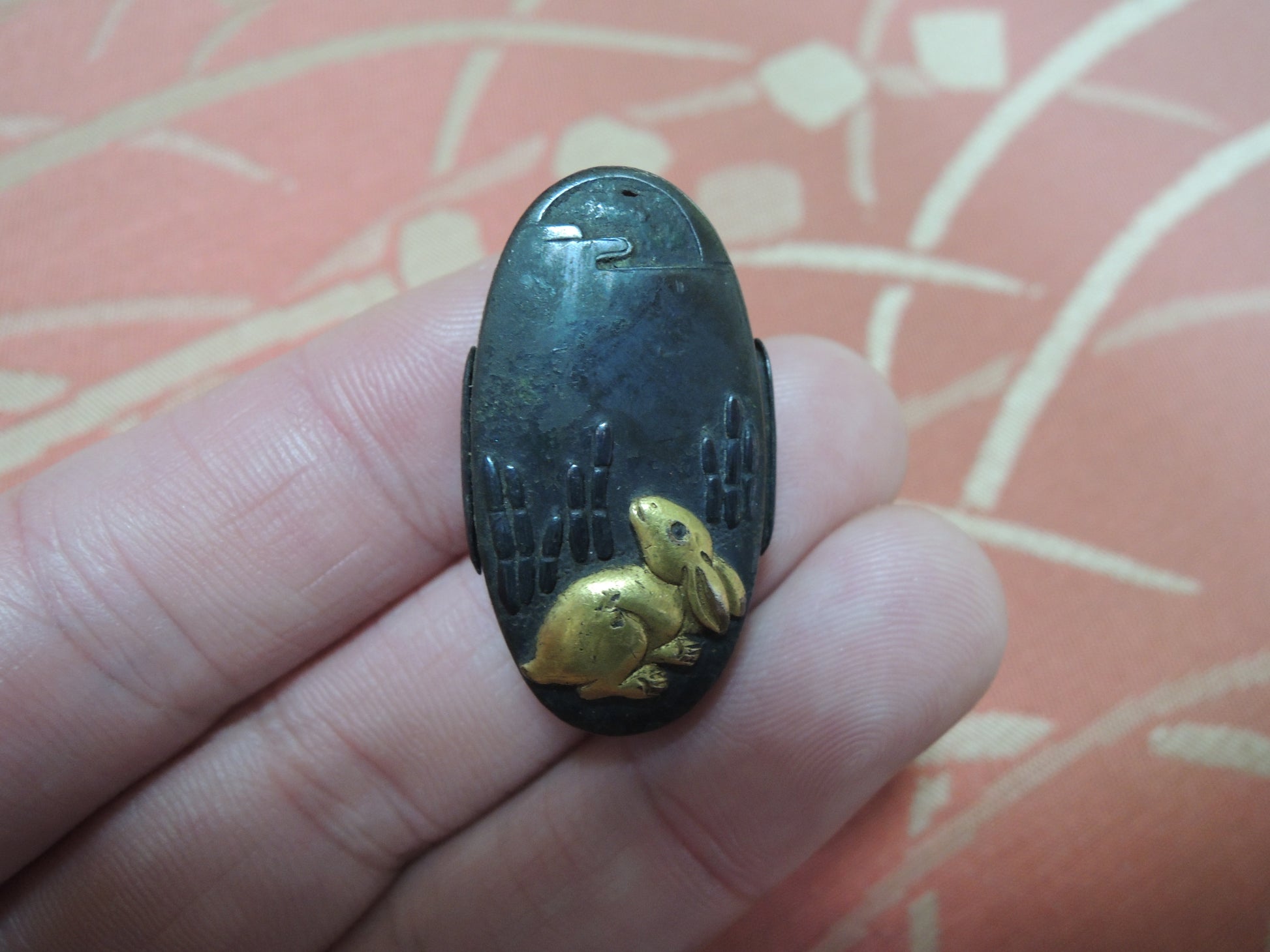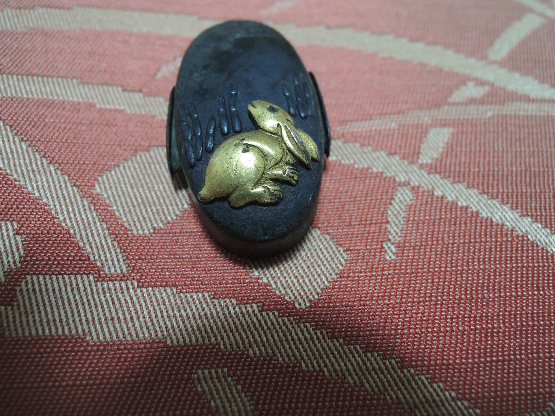 Antique Fuchikashira Japan Samurai katana Edo period Hazy moon and Rabbit Tsukiusagi no zu