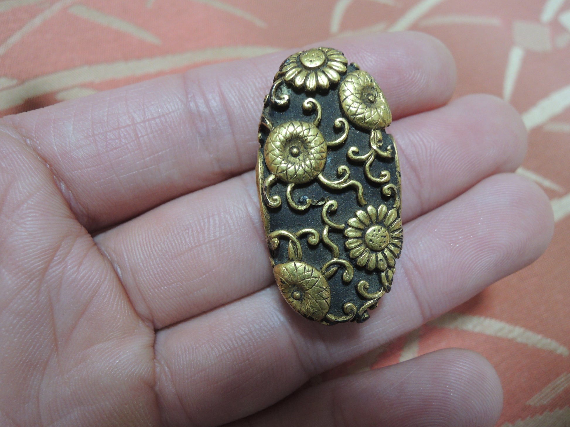 Antique Fuchikashira Japan Samurai katana Edo period Kiku Chrysanthemum no zu