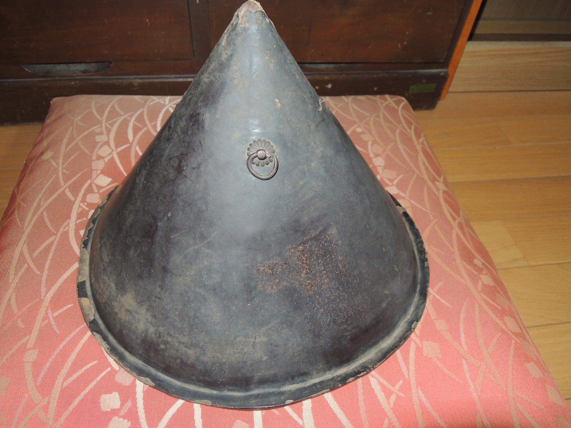 Antique Lacquered Wooden Jinkasa Japan Edo period Line Infantry Helmet