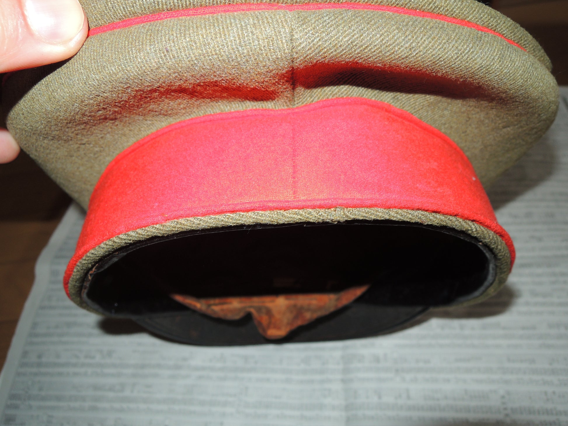 Leather on the inside of the hat is hardened and may split if force is applied.