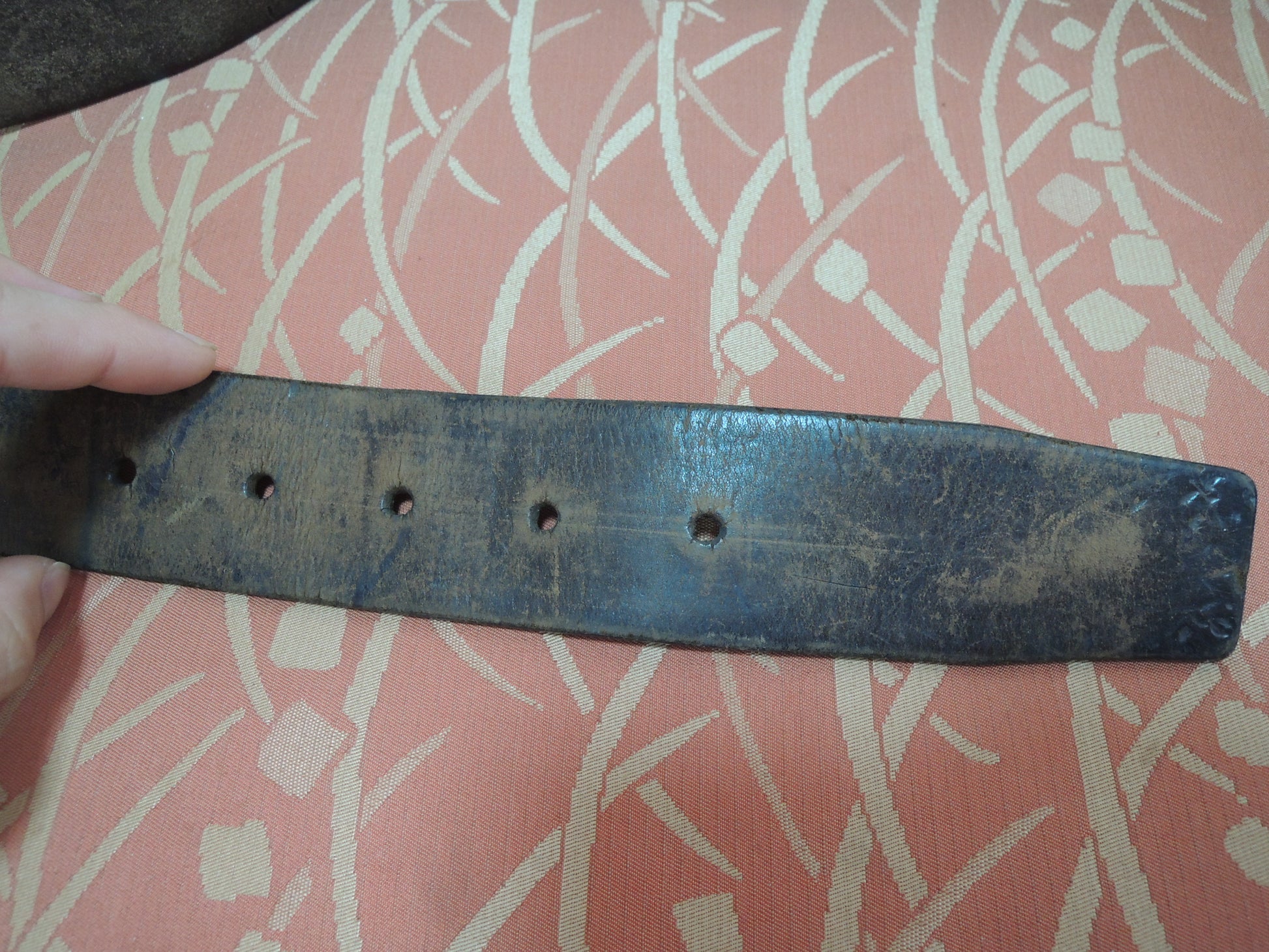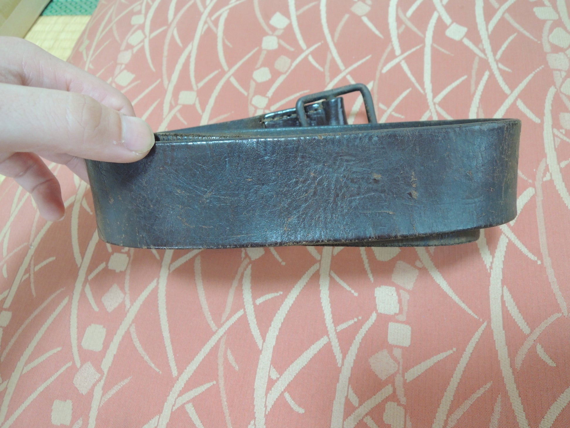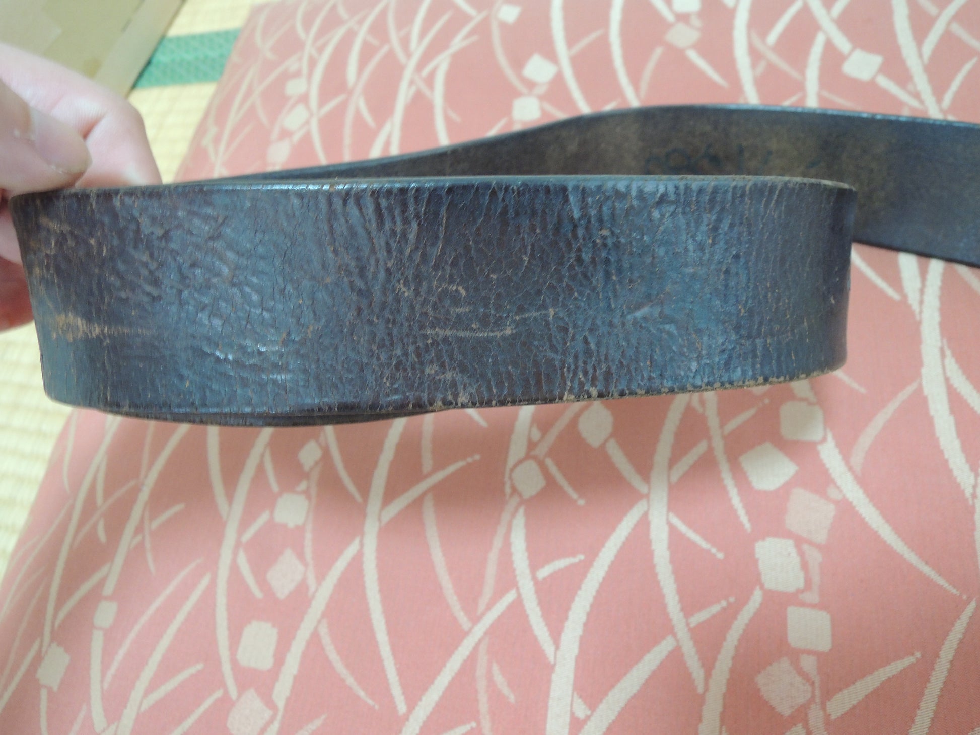 The belt is supple with some age-related stains and creases, but shows no hardening.