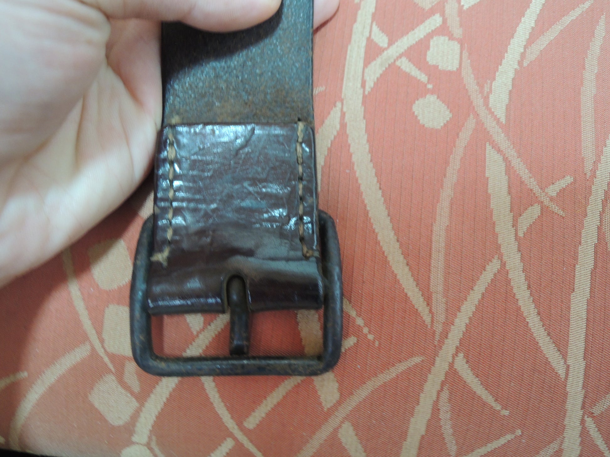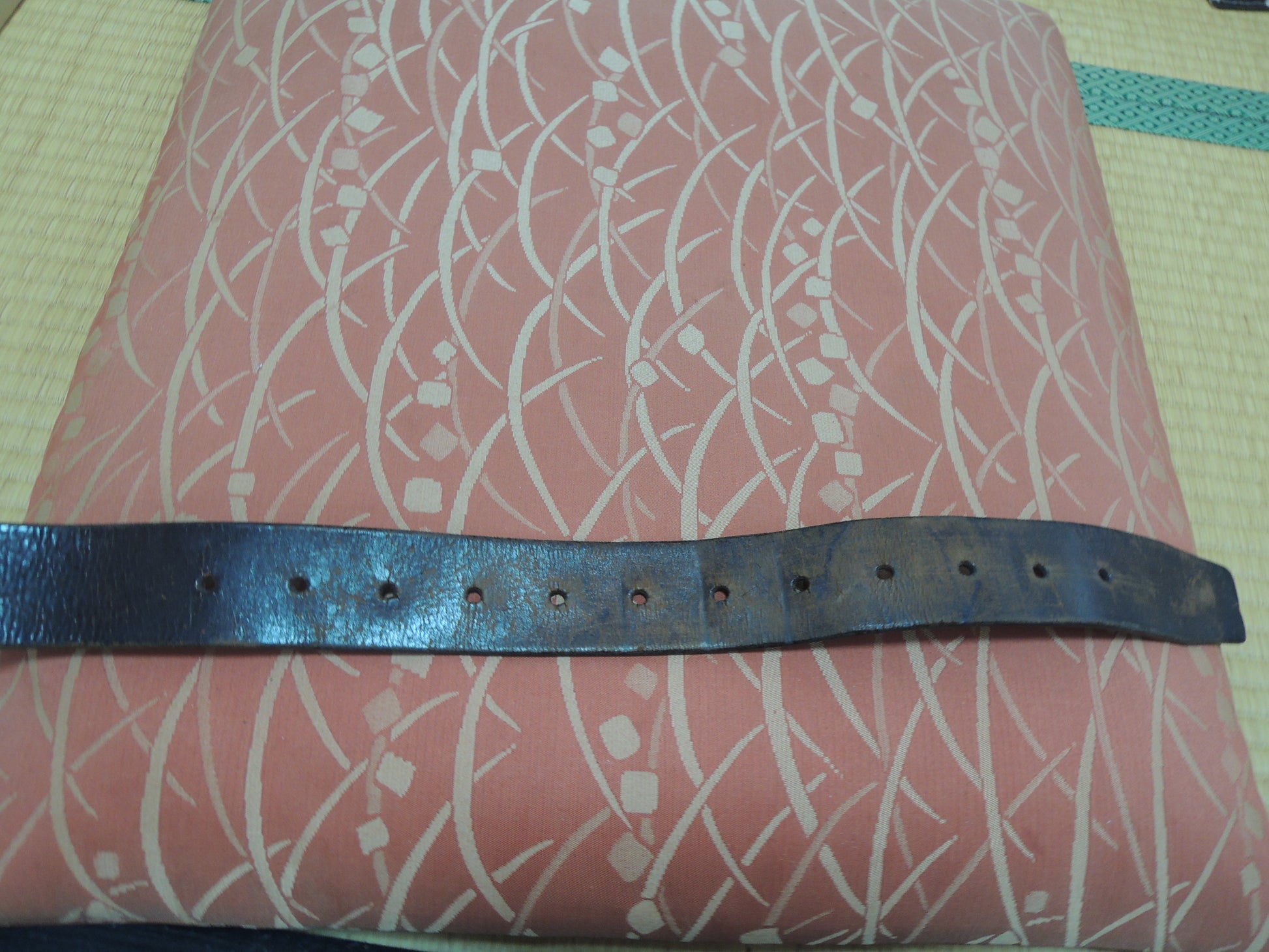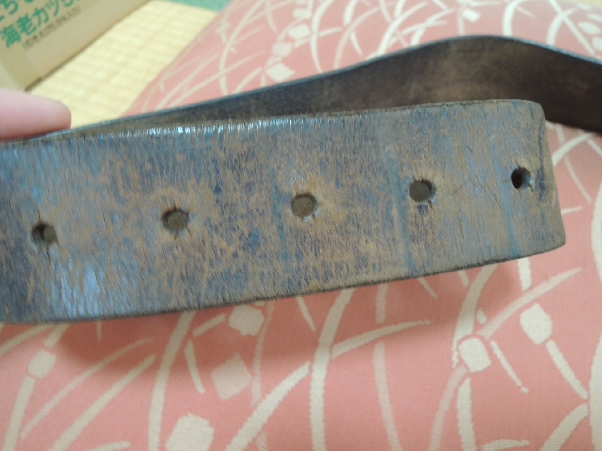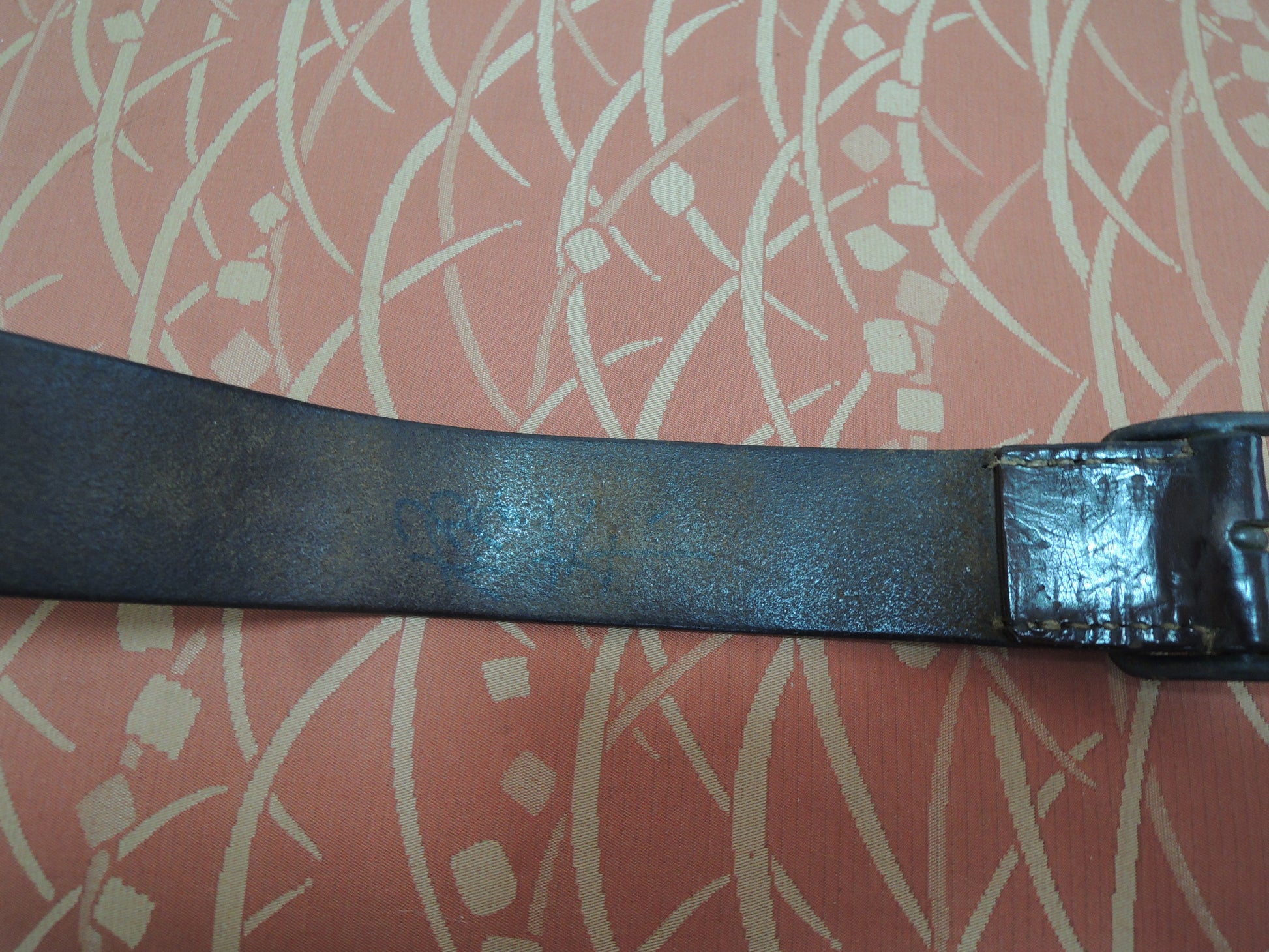 The belt is supple with some age-related stains and creases, but shows no hardening.