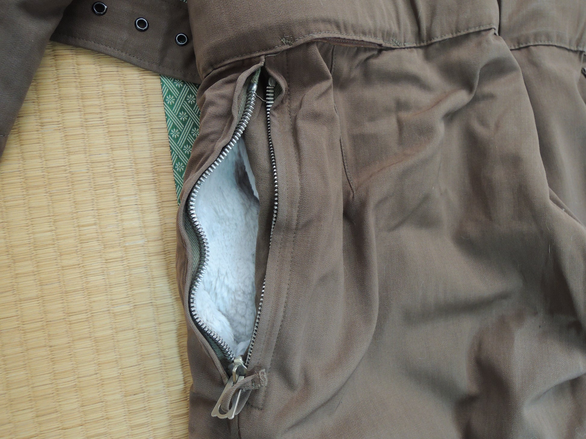 For winter flight suits, an electric heating wire was installed inside, but in this item, the wire and outlet had been removed.